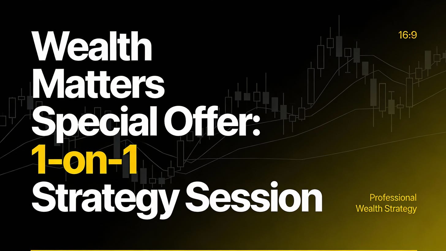NEW YEAR EXCLUSIVE SUBSTACK OFFER: Claim Your Wealth Matters Sovereignty Blueprint Session: Wealth Matters 3.0 readers only—secure a New Year Personalized Strategy and Blueprint Session with me. First 5 Substack subscribers get 50% off: just $1,500 (Normally $2,997). We’ll audit your current portfolio mix, your asset protection plan and team, bitcoin stack (or lack thereof), custodial solutions, map courage rituals, and engineer your 2026 liberty blueprint. I will also plug in any holes in your advisor network to help you execute it seamlessly!