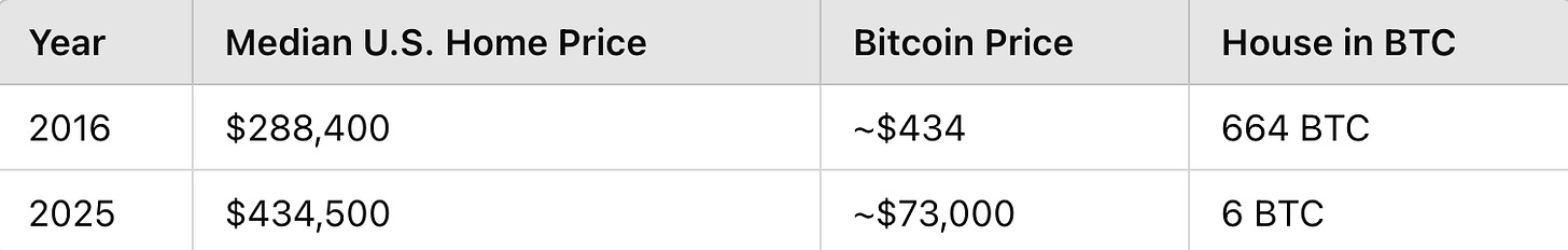 That’s a 100x gain in real estate purchasing power using Bitcoin.