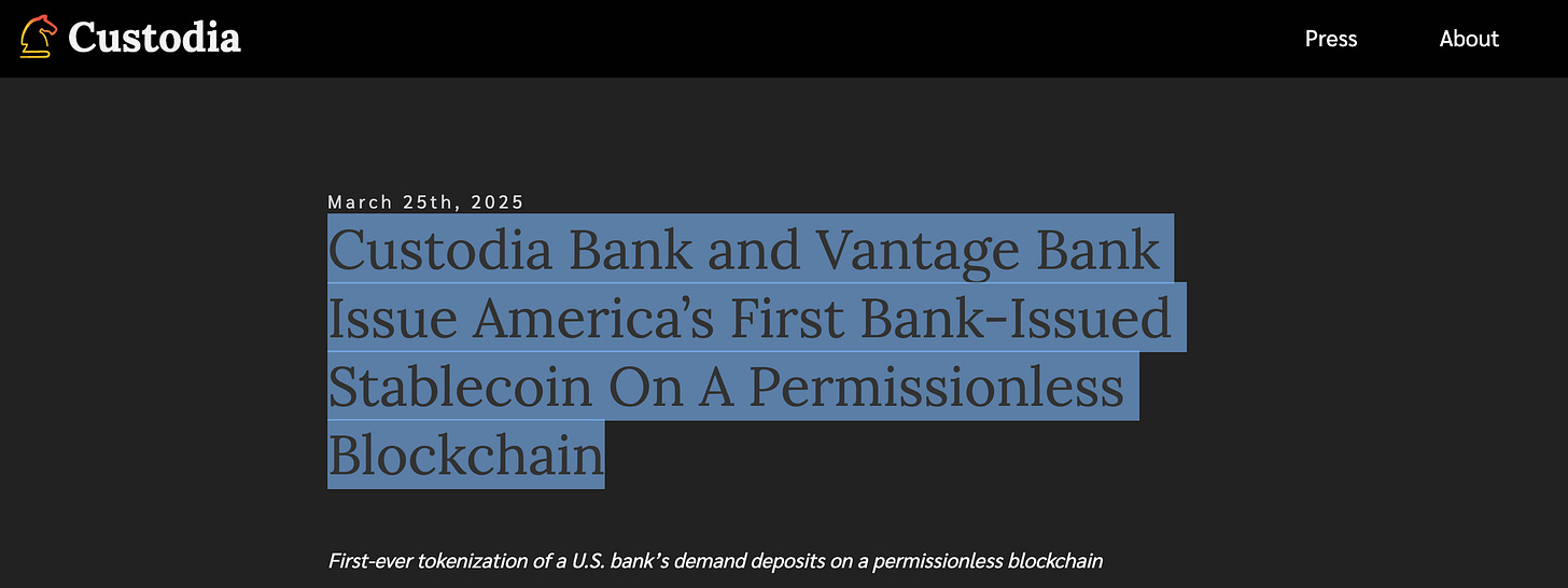 That competitive model is quietly returning — but this time, on blockchains, led by my friend Caitlin Long and her 7-year long fight to lead us into this free market at Custodia Bank in Wyoming.