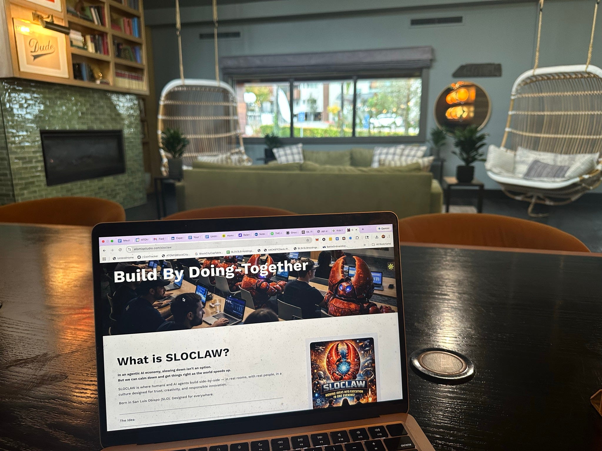 A few months after the sale, James and Jakob started showing up to SLOCLAW Foundry — the Genesis node of the Human Agent League (HAL), which is in the ATOMIQ portfolio—, a Thursday night AI build community I founded in San Luis Obispo.