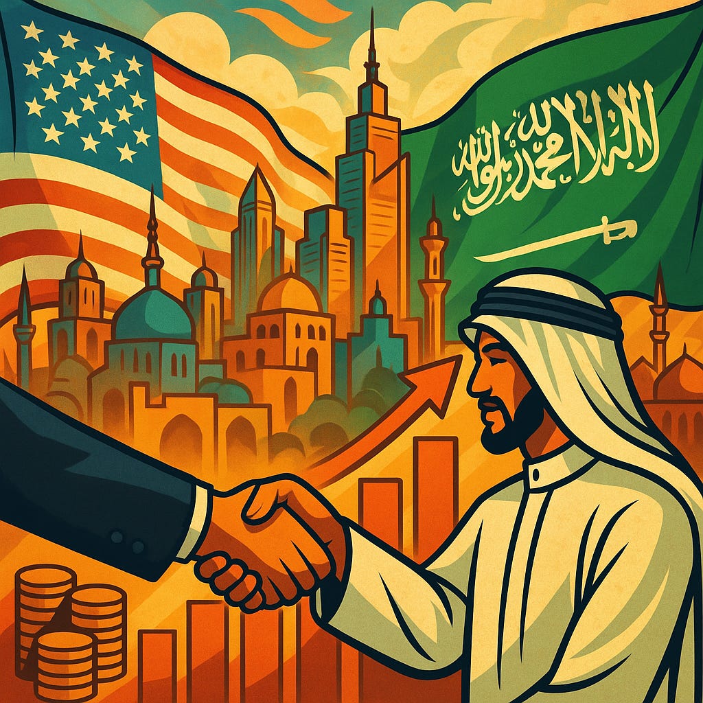 The Gulf states (Saudi Arabia, Qatar, UAE) are shifting their identity from oil-based regimes to sovereign innovation funds, AI pioneers, and global defense power players. And they’re betting big on American firms to get them there.