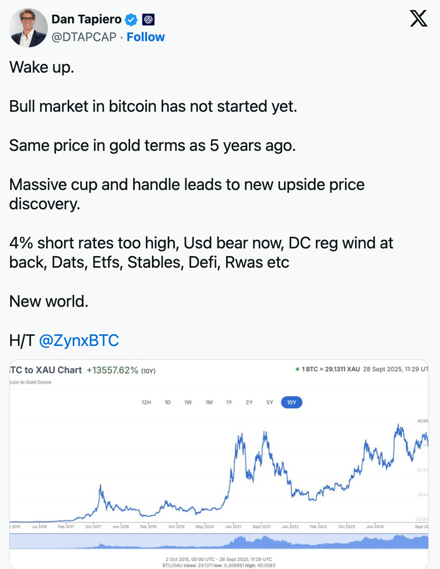 In Fiat terms, Bitcoin shattered through $122,000 in 2025, cementing its role as the premier hard asset of the digital age. Institutional adoption exploded after ETF approvals, pension fund mandates, and sovereign accumulation. But in Gold terms, it is the same price today as it was in 2020. This means that it still has tremendous upside ahead.